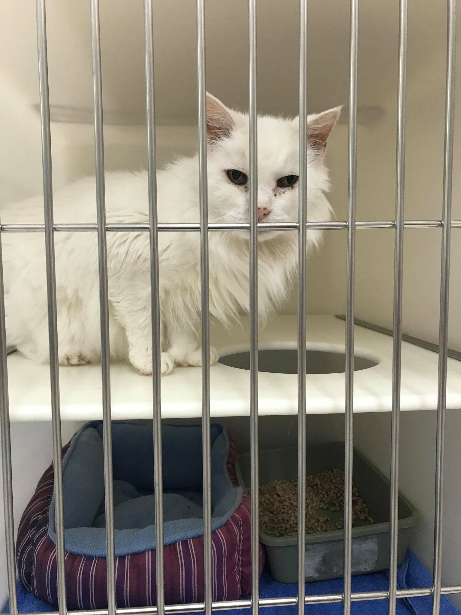 This is Snowball. He is at least 20 years old but he’s still getting around fairly good. He’s sweet and cuddly and very well behaved. If you have it in you, could you consider giving this lovely old man a comfortable home to live out the rest of his days?