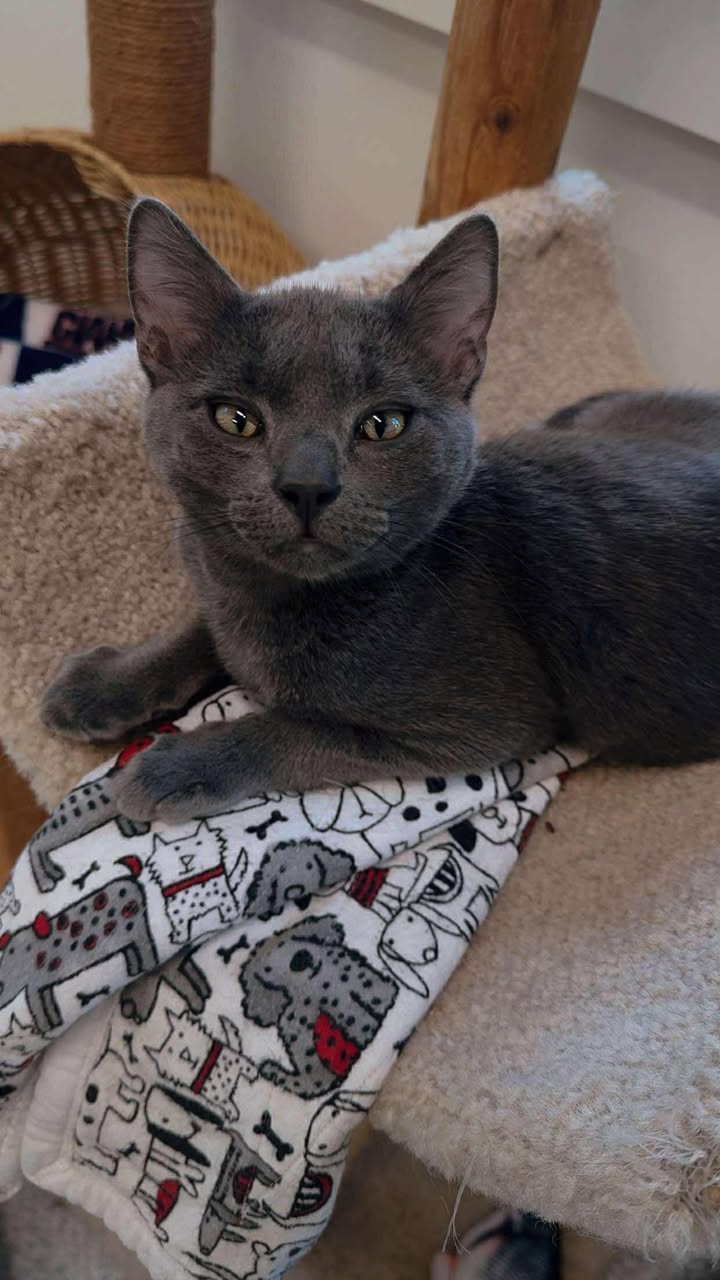 Alto the kitten is a gentle soul with a playful spirit and a heart full of love. Though quiet by nature, he brings a calming presence to any room, often found nestled in a cozy corner for one of his many peaceful naps. Between snoozes, Alto loves to perch by the window, intently watching birds flutter by, his tail flicking with curiosity and fascination. His playful moments are soft and sweet, a perfect reflection of his calm demeanor. With every sleepy purr and quiet cuddle, Alto fills the home with warmth and quiet joy