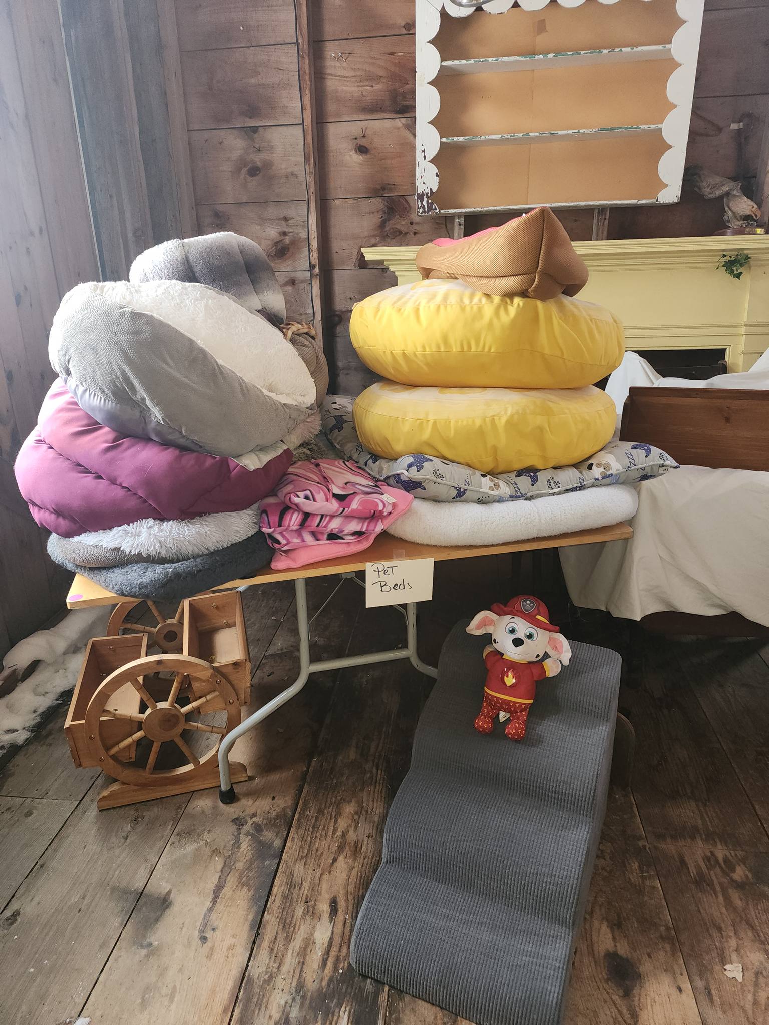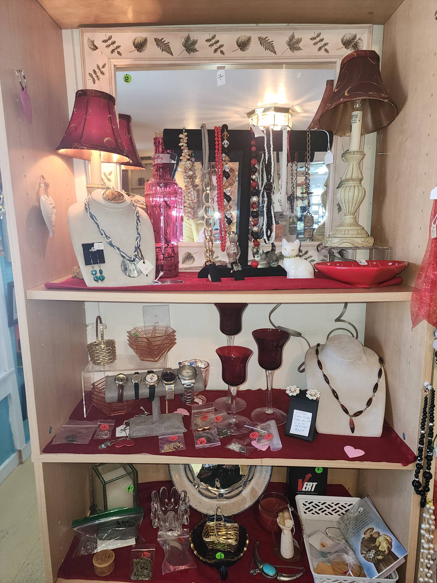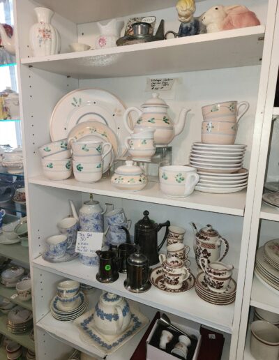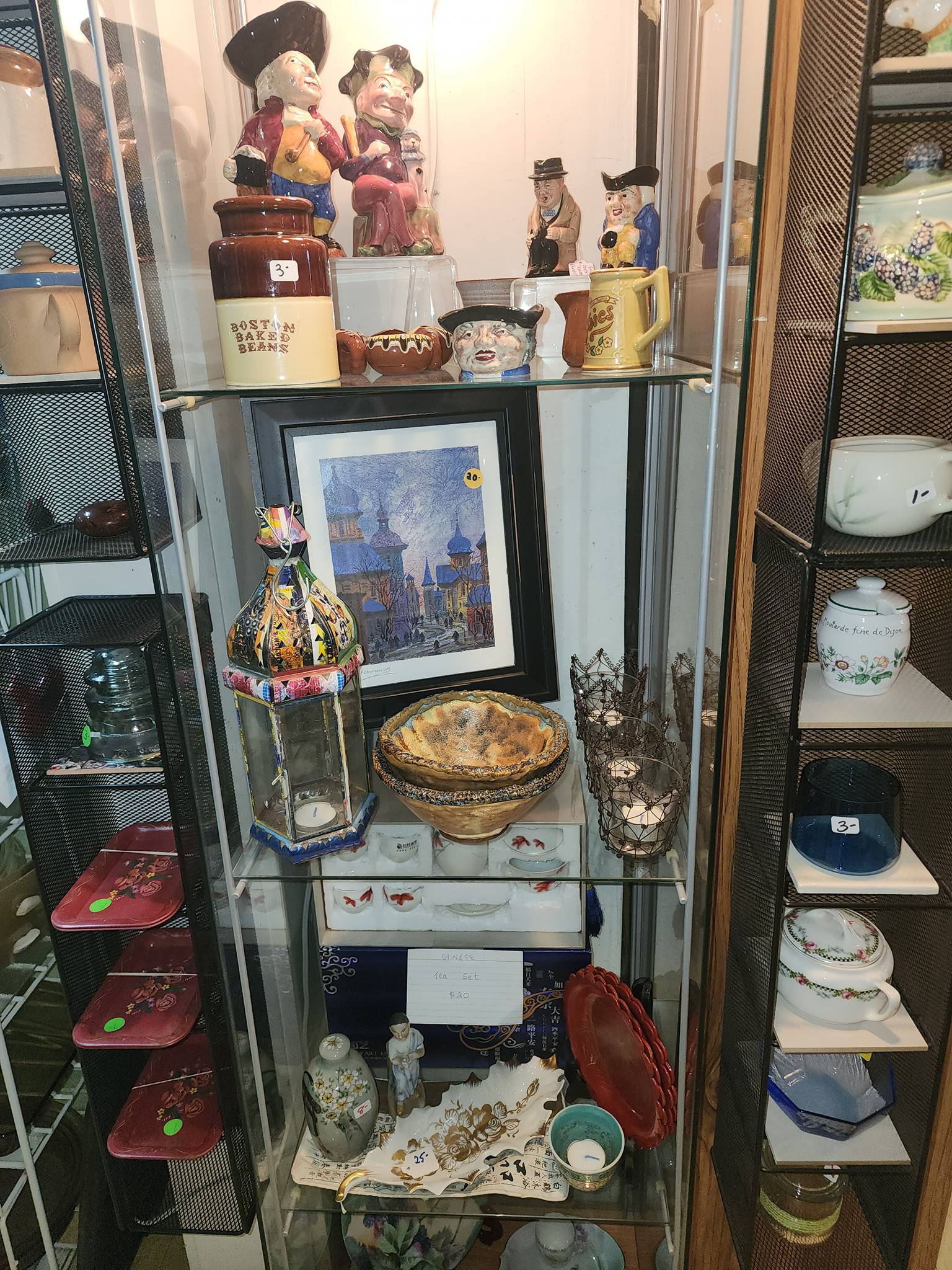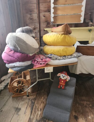 The shop relies on donations and volunteer staffing and carries a large selection of continually changing inventory.  Our inventory includes household goods/small kitchen appliances, pottery, lamps, hardware/tools, linens, crafts/fabric, holiday items, small furniture, children’s toys/books, sports/garden items, games/puzzles, jewelry, candles, knick-knacks and art-work, as well as pet-related items (collars, leashes, toys, bedding, crates, litter and food).